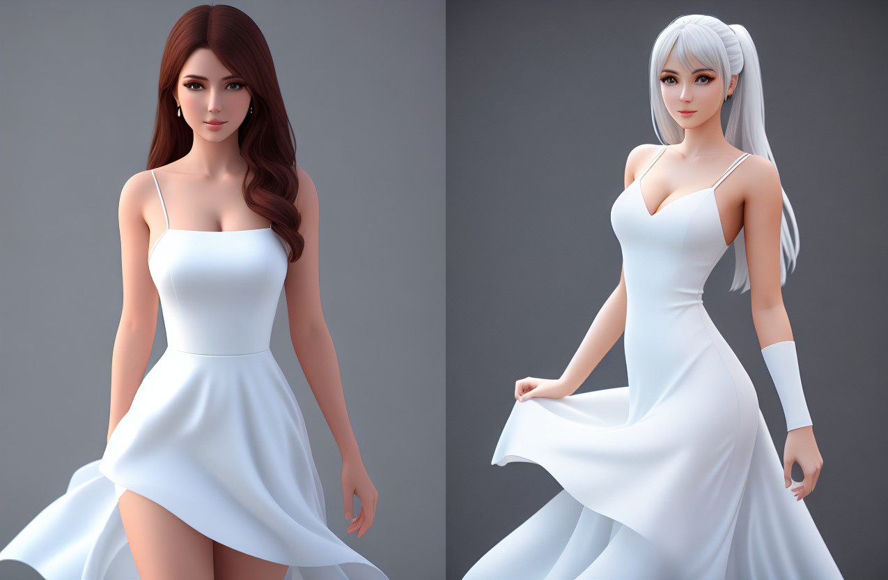 prompt:beautiful young woman, cute,whole body,front view,wearing white dress,8k resolution,3d render