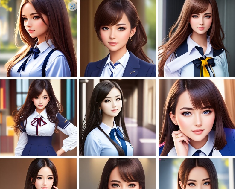 制服の女子たち Hotガールズ 2023.04.10 制服も定番! prompt:((masterpiece))a pretty woman, dressed in school uniform, full body portrait, nice perfect face with perfect face, hyper realistic concept, 8k resolution, photography quality, posing for a photo, photo realistic, ネガも入れました。