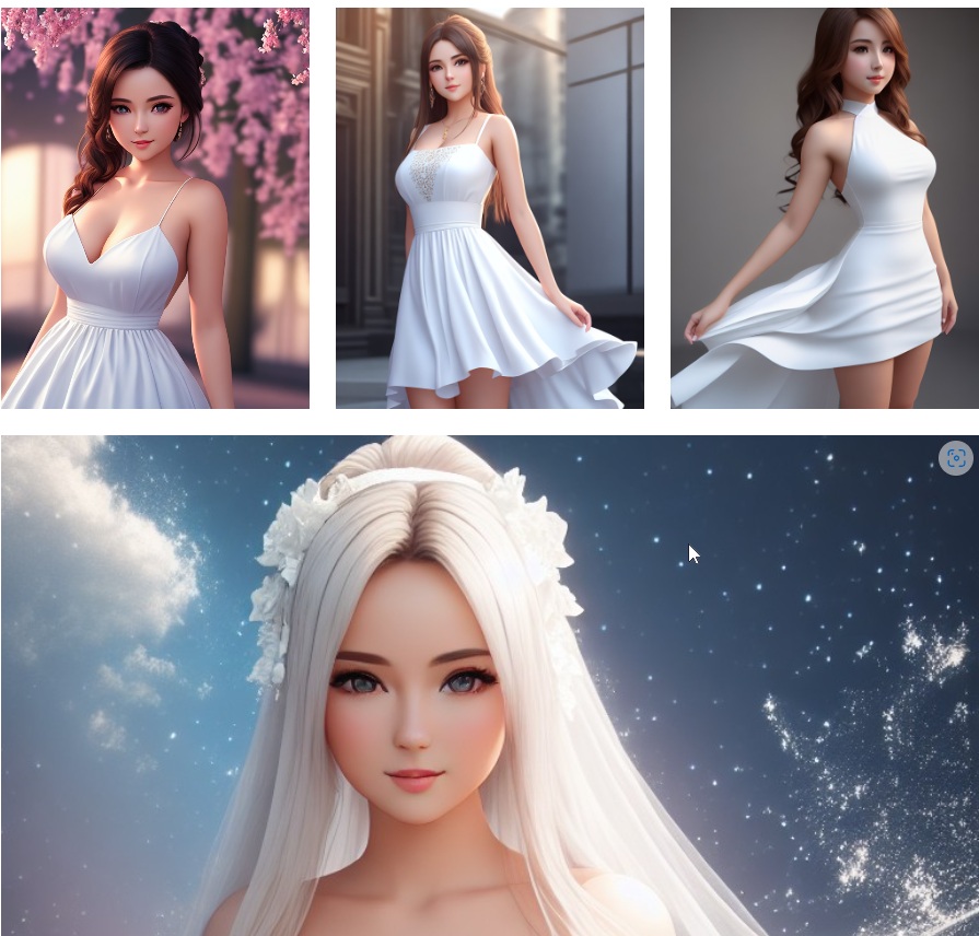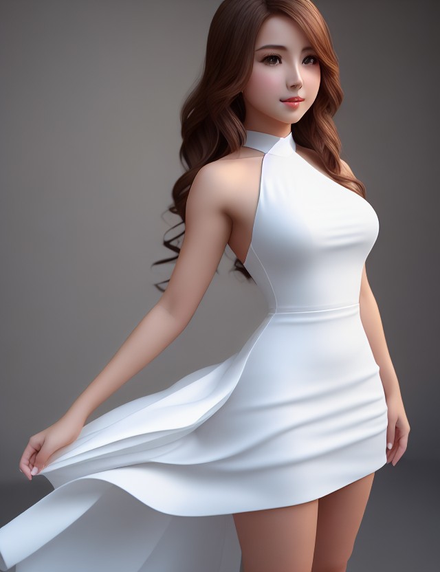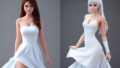 どんどんはります Hotガールズ 2023.04.10 Leonardo ai DreamShaper3.2使用 prompt:((masterpiece)),beautiful young woman, cute,whole body,front view,wearing white dress,8k resolution,3d render negativeも入れてます。