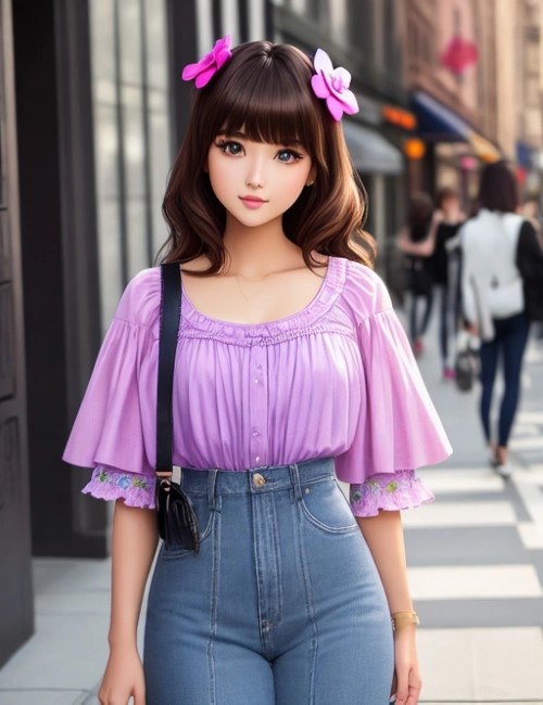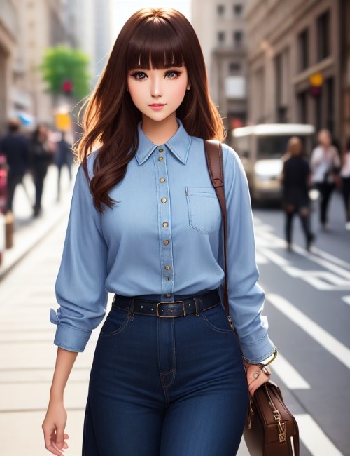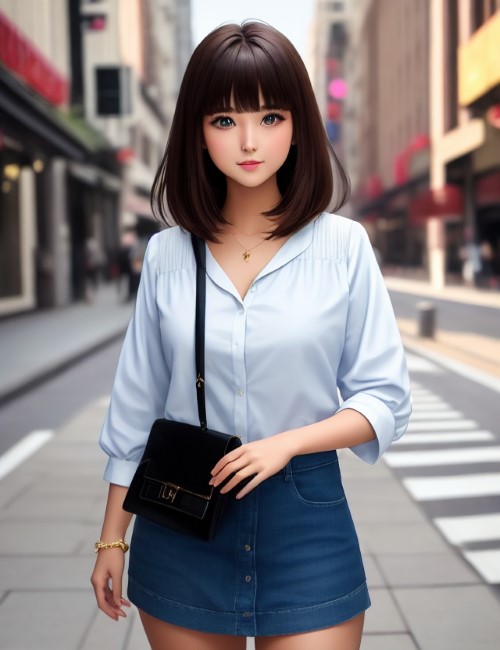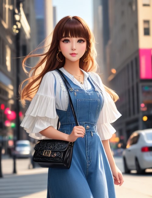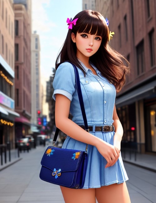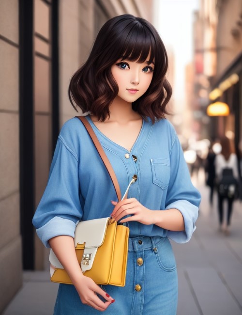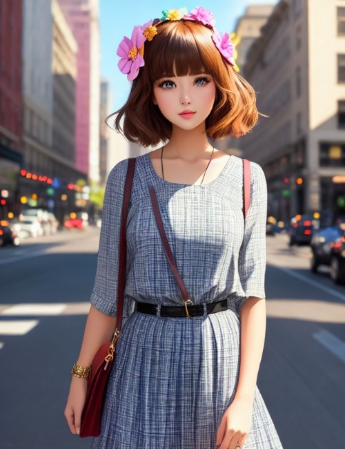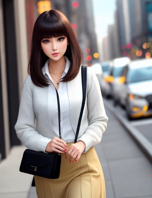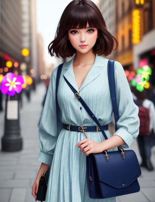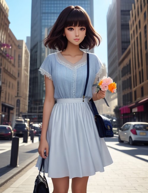 ((masterpiece)), beautiful face,cinematic light,a beautiful woman,wearing simple clothing and pinwheels,bringing a purse,in the city,whole body,beautiful eyes,bangs,beautiful hair, perfect anatomy, very cute,8 life size,8k Resolution, human hands, wonderfull, elegant, perfection, dynamic, highly detailed, smooth, stunningly beautiful girl, detailed hairstyle